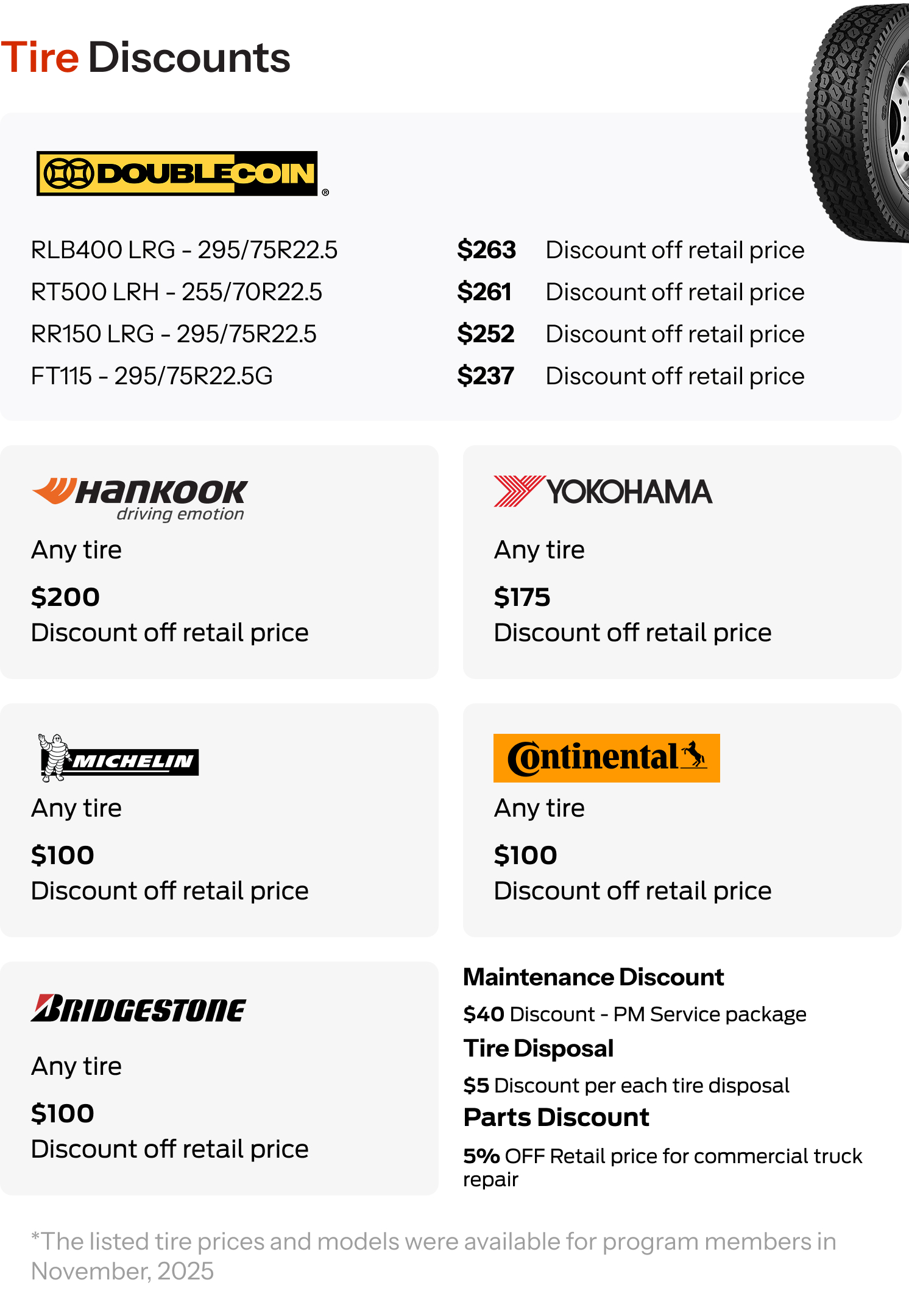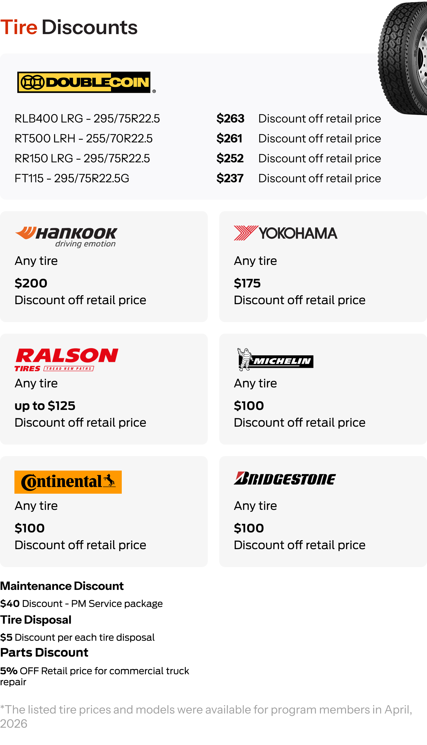 Owner-Operators needing affordable tire and maintenance solutions.